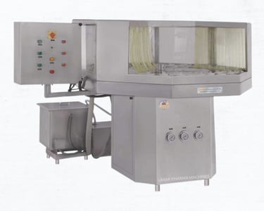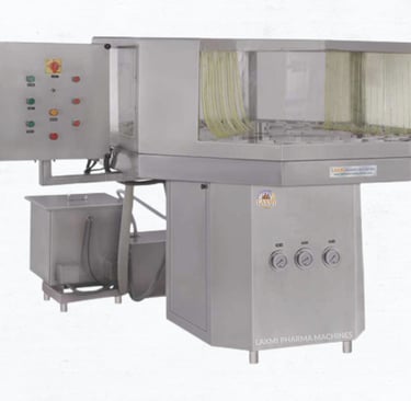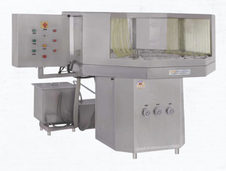 The Semi Automatic Rotary Bottle washing Machine is compact and highly efficient machine with elegant look. This multi functional multi featured machine meets the GMP requirements of washing for glass and plastic bottles. The machine operates on the Rotary principle with “GENEVA” mechanism and requires manual loading and unloading of bottles.
